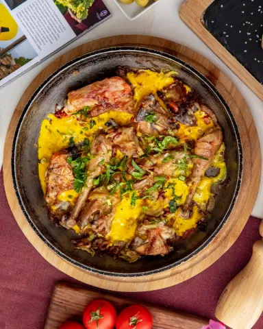 With creamy tomato sauce. Topped with grated Romano. Be sure to purchase chafing dishes if...